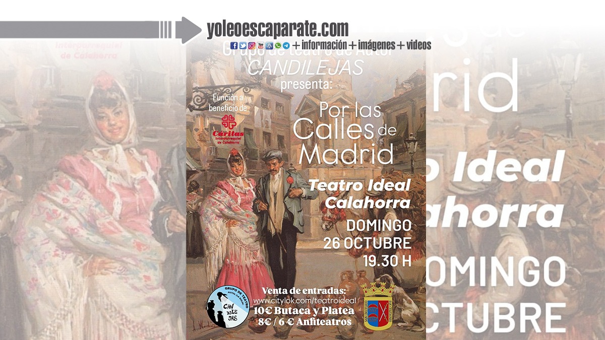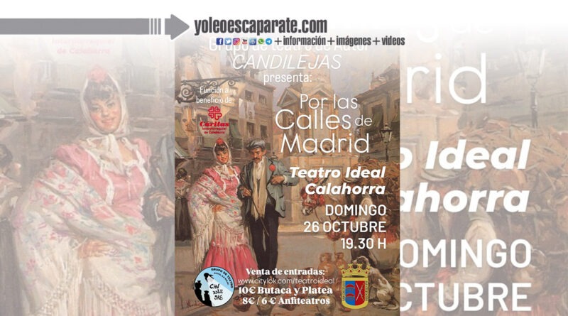 La obra contará también con la participación de la Asociación de Baile Flamenco Maibe, y promete una velada llena de música, color y tradición. Por las calles de Madrid invita al espectador a recorrer el Madrid más castizo a través de personajes típicos de la zarzuela, el cuplé, el chotis y la revista, ofreciendo un homenaje a las costumbres populares y a la alegría madrileña.