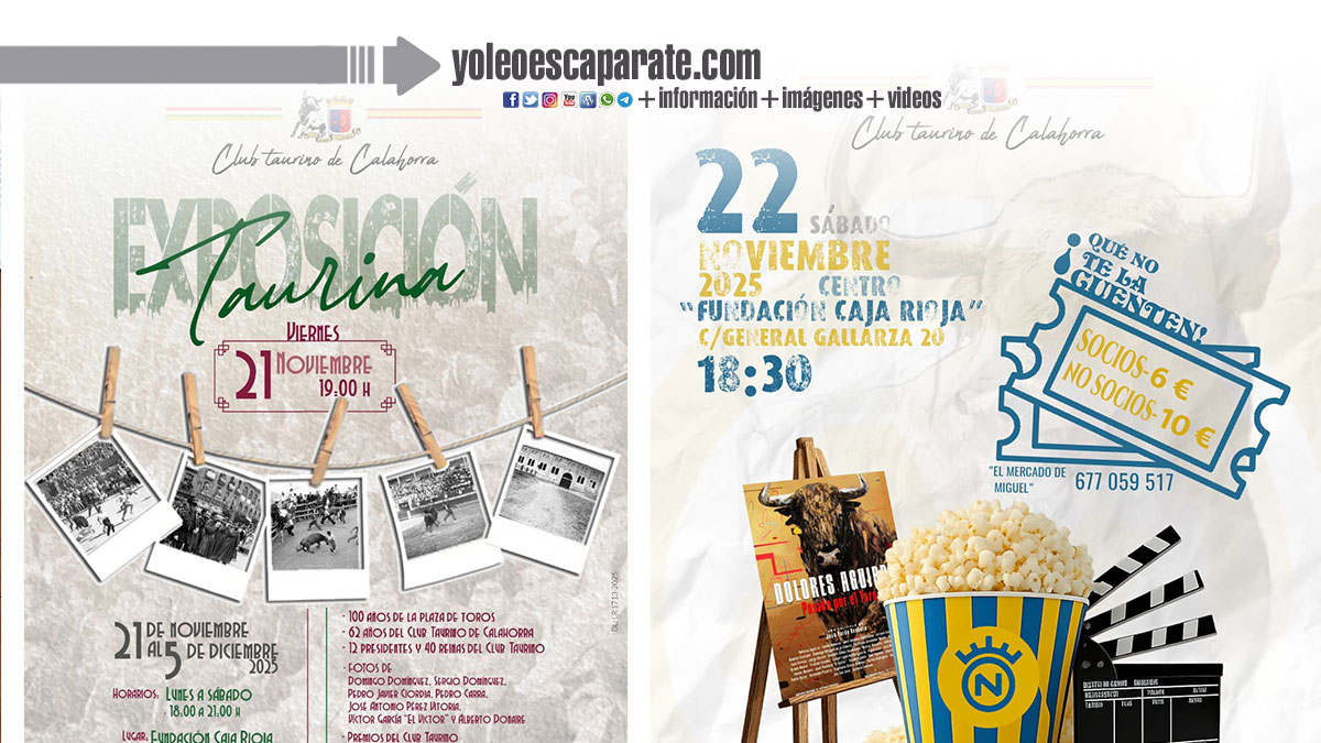El Club Taurino de Calahorra, en colaboración con el Excmo. Ayuntamiento de Calahorra y la Fundación Caja Rioja, inaugurará el próximo viernes 21 de noviembre a las 19:00 horas la Exposición Taurina 2025, una muestra que pretende poner en valor la historia y la tradición taurina de la ciudad. La cita tendrá lugar en el Centro Fundación Caja Rioja, ubicado en la calle General Gallarza 20.
