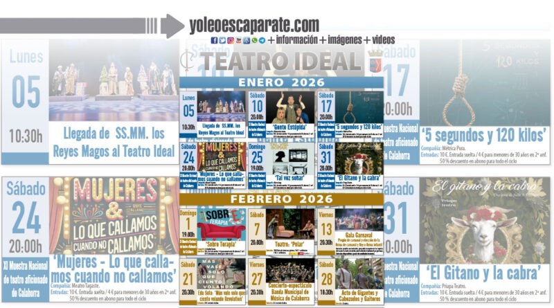 El grupo Tagaste presentará su montaje teatral titulado ‘Mujeres-Lo que callamos cuando no callamos’ el 24 de enero a las 20:00 horas y el 25 de enero actuará la compañía Maru-Jasp que subirá al escenario del Ideal para representar ‘Tal vez soñar’ a las 19:00 horas.