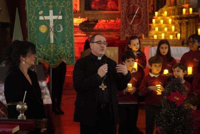Al finalizar el concierto, tuvo lugar la inauguración del Belén y del ambigú cofrade, instalados en la Sala-Claustro, un acto que reunió a numerosos asistentes y miembros de la comunidad cofrade.