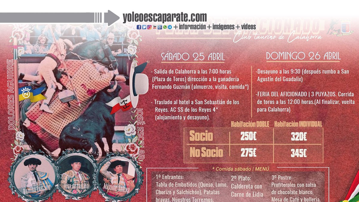 El Club Taurino de Calahorra ha puesto en marcha un viaje organizado con motivo de la Feria del Aficionado, que se celebrará los días 25 y 26 de abril de 2026, una de las citas más relevantes del calendario para los aficionados al toro íntegro y a la tauromaquia más auténtica.
