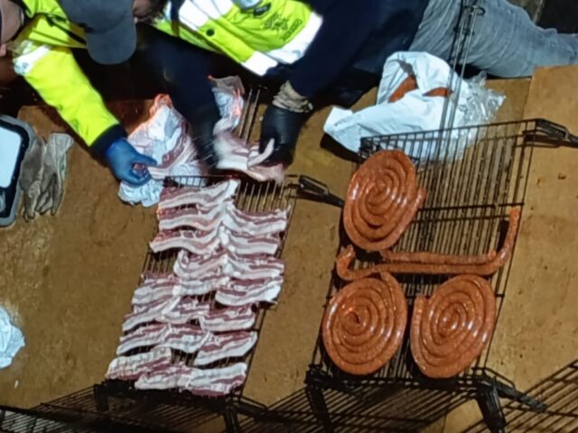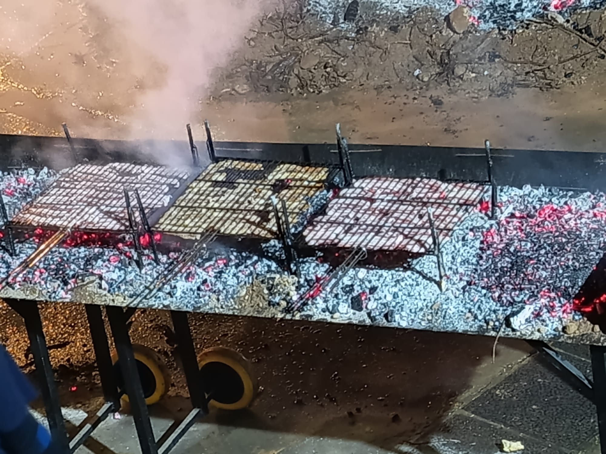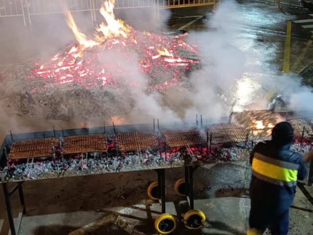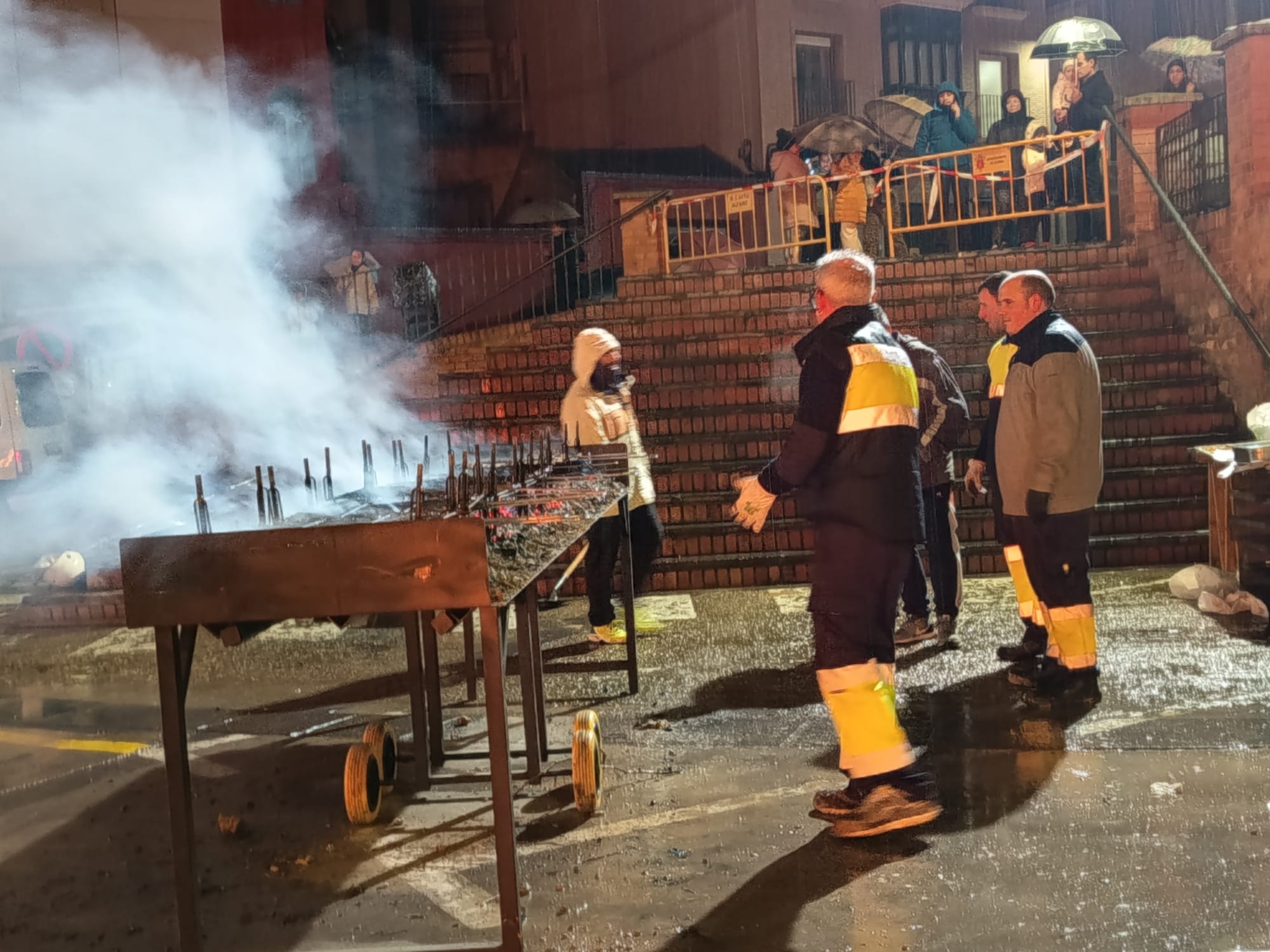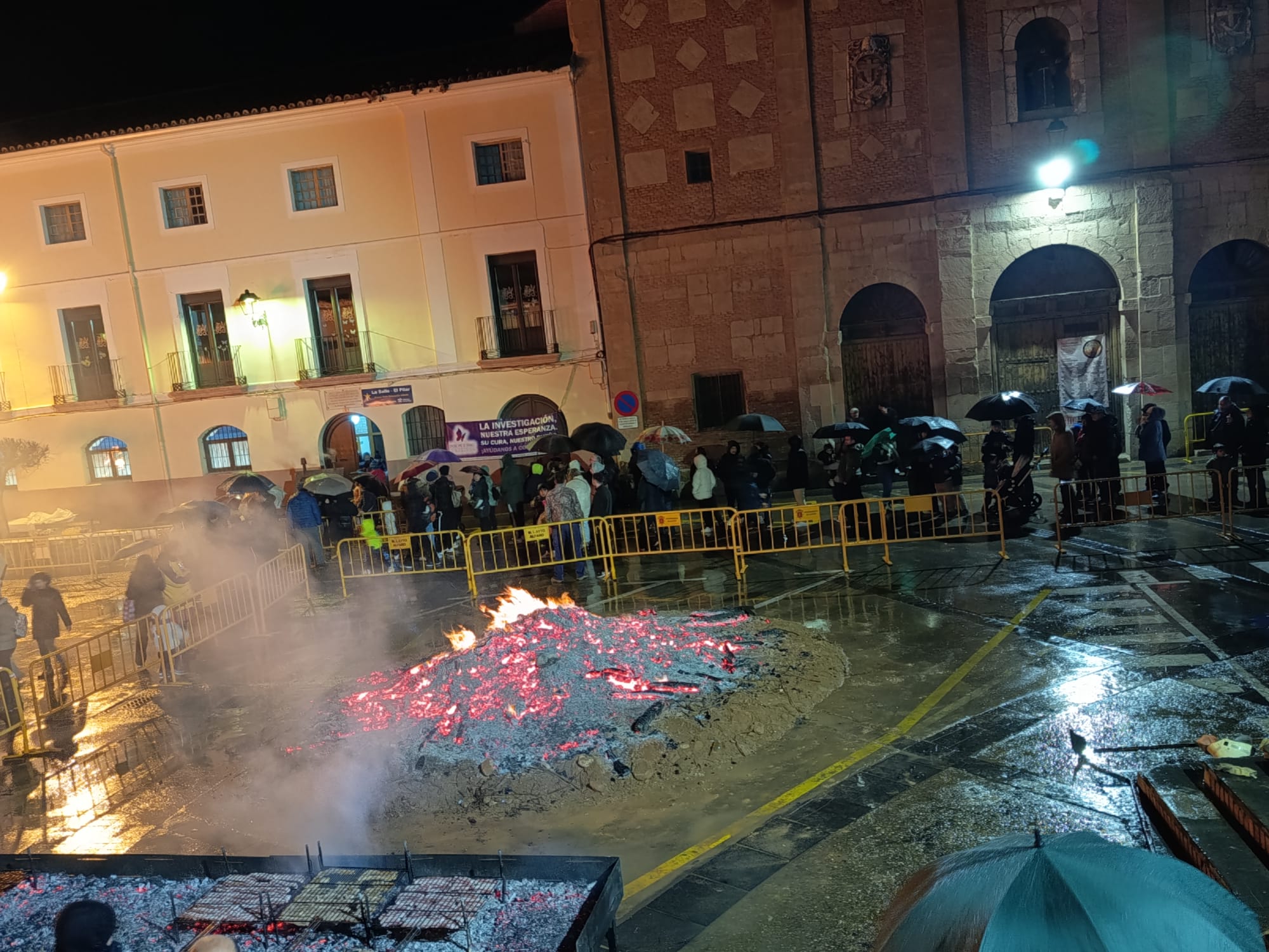El encendido oficial de la hoguera tuvo lugar a las 18:30 horas en la Placeta San Francisco, que se convirtió en el principal punto de encuentro de la jornada. Tras el encendido, se desarrolló un reparto popular de salchicha roja, panceta y patatas asadas, en un ambiente festivo marcado por la convivencia y la participación ciudadana.