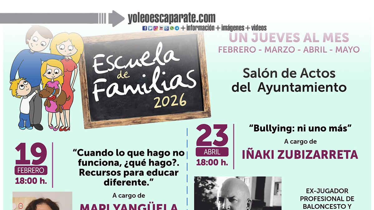 La Escuela de Familias se desarrollará los jueves 19 de febrero, 26 de marzo, 23 de abril y 28 de mayo, a las 18:00 horas en Alfaro