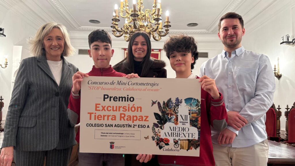 La alcaldesa de Calahorra, Mónica Arceiz, y el concejal de Medioambiente, David Navarro, han entregado los premios a los ganadores de los concursos escolares convocados por el Ayuntamiento de Calahorra dentro de la XII Semana del Medio Ambiente, que se celebró del 1 al 8 de diciembre de 2025 bajo el lema ‘Nunca abandones tus residuos en el medio natural’.