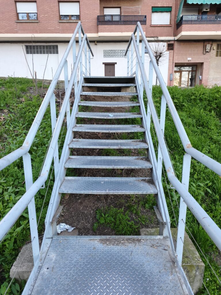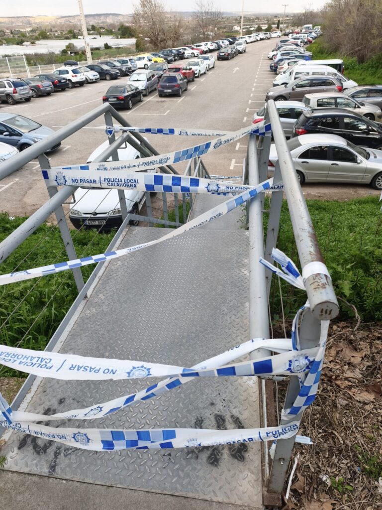Según explican, el problema se originó tras el deterioro de uno de los peldaños de las escaleras que comunican con el parking, cuya falta suponía ya un riesgo evidente para los usuarios. Actualmente ya no existe peldaño.Tras poner en conocimiento esta situación, la solución adoptada fue el balizamiento de la zona mediante precinto de la Policía Local, sin que hasta la fecha se haya llevado a cabo la reparación necesaria.
