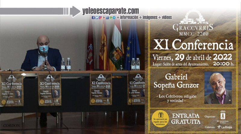 La XI Conferencia Graccurris en Alfaro se dió de la mano del historiador Don Gabriel Sopeña Genzor (Zaragoza, 1962) doctor en Filosofía y Letras, con Premio Extraordinario de Doctorado (1992-1993), y Profesor Titular de Historia Antigua de la Universidad de Zaragoza, quien trasladó a los asistentes a conocer fundamentalmente los aspectos ideológicos y religiosos del mundo antiguo, con especial incidencia en el área cultural de la Celtiberia Hispánica. Ha estudiado significadamente distintas facetas relacionadas con los rituales de la muerte y sus repercusiones éticas y sociales en la Antigüedad. Líneas complementarias dentro de esta labor afectan a los elementos iconográficos: en Roma, la Céltica y el Oriente Próximo; y a la revisión de diversos fragmentos historiográficos de autores griegos y latinos relativos a Hispania.