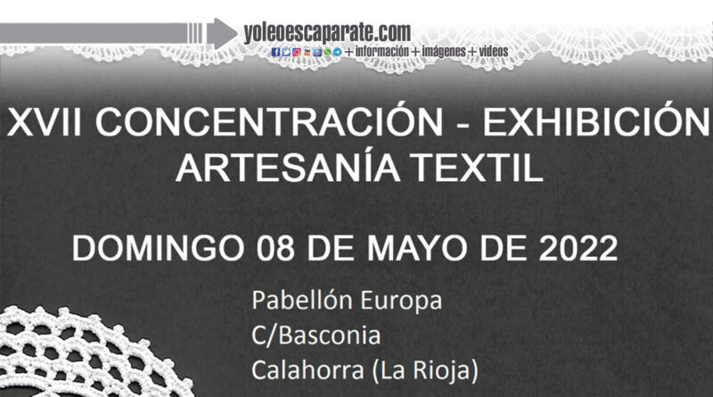 ARTECA, Asociación Artesanía Textil Calagurritana, en colaboración con el Ayuntamiento de Calahorra han organizado la XVII Exhibición-Concentración de Artesanía Textil que tendrá lugar el domingo 8 de Mayo de 2022, de 10.00 a 14.00 horas en el Pabellón Europa de la Calle Basconia de Calahorra (La Rioja).