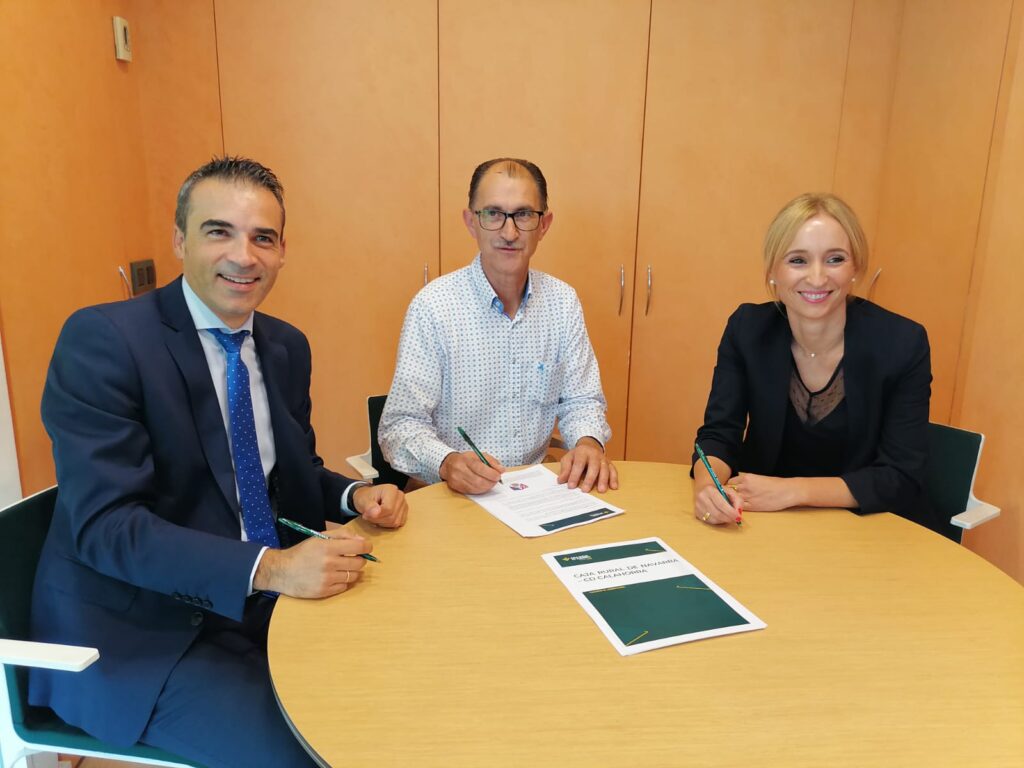 CD Calahorra y Caja Rural de Navarra firman un convenio de colaboración para facilitar el acceso al club deportivo tanto a los jugadores/as como a los socios, a los que aportará 40 euros si son socios del club, o jugadores/as; a los clientes de la entidad les abonarán esa cantidad en sus cuentas y a los nuevos clientes les harán la aportación.