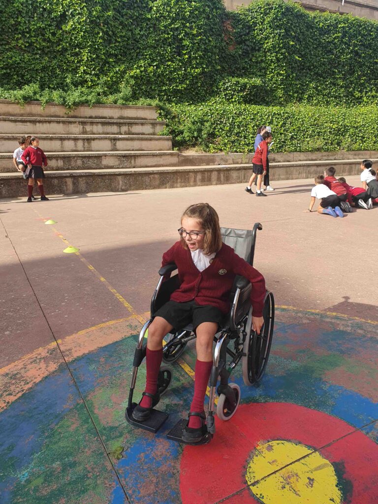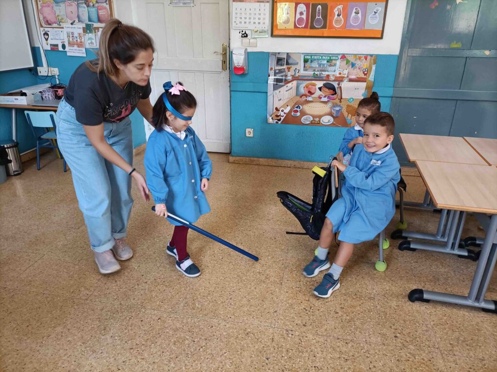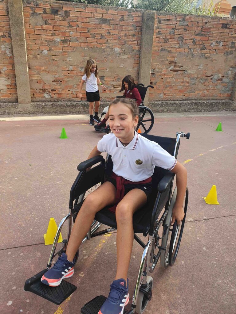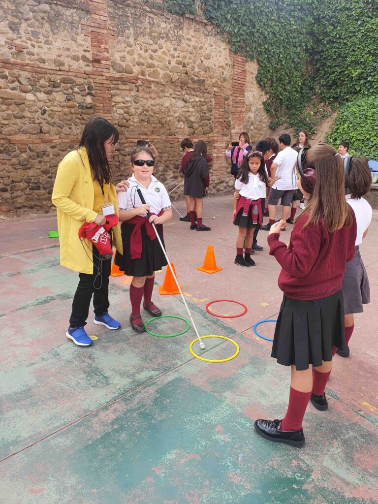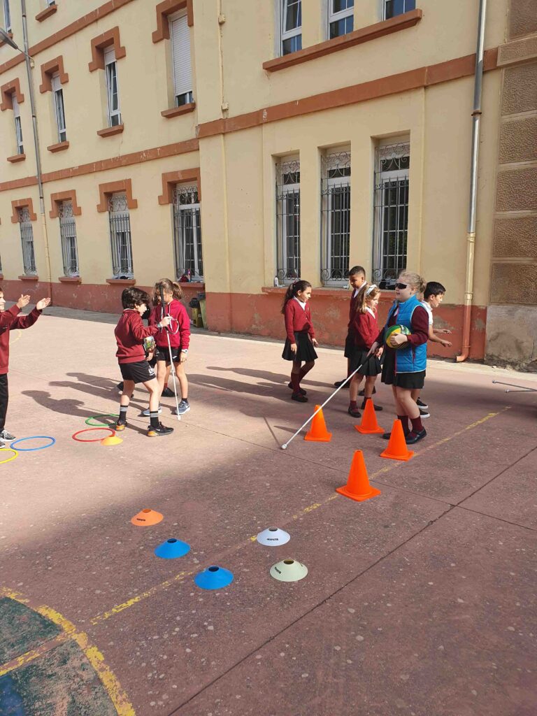 Los alumnos primero recibieron una sesión teórica, en la que aprendieron sobre la discapacidad y las barreras técnicas con las que se encuentran. Y después, pasaron a la parte práctica en el patio, donde los alumnos realizaron diferentes actividades para ponerse en el lugar de las personas en función de su discapacidad.