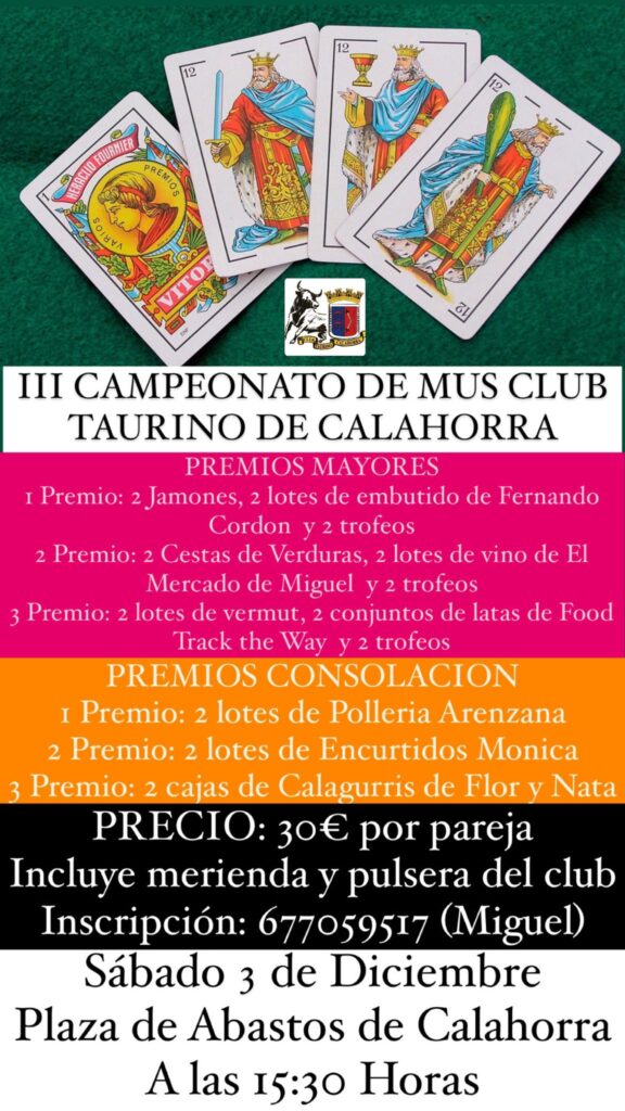 Sábado 3 de Diciembre: Campeonato de mus Club Taurino de Calahorra en la Plaza de Abastos de la ciudad