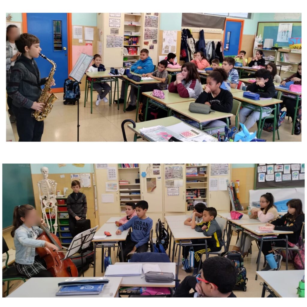 Los alumnos y alumnas que tocan un instrumento musical fueron pasando por todas las clases del centro, desde el día 21 de noviembre hasta el 2 de diciembre. Les enseñaron y explicaron sus instrumentos y les ofrecieron unos grandes conciertos.