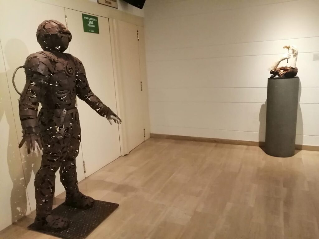 Esta obra de gran tamaño se ha valorado por el gran esfuerzo técnico que requiere y su habilidad para componer con materiales reciclados metálicos una figura de gran tamaño. Confeccionada por completo soldando pequeñas piezas, es sorprendente el modelado que consigue.