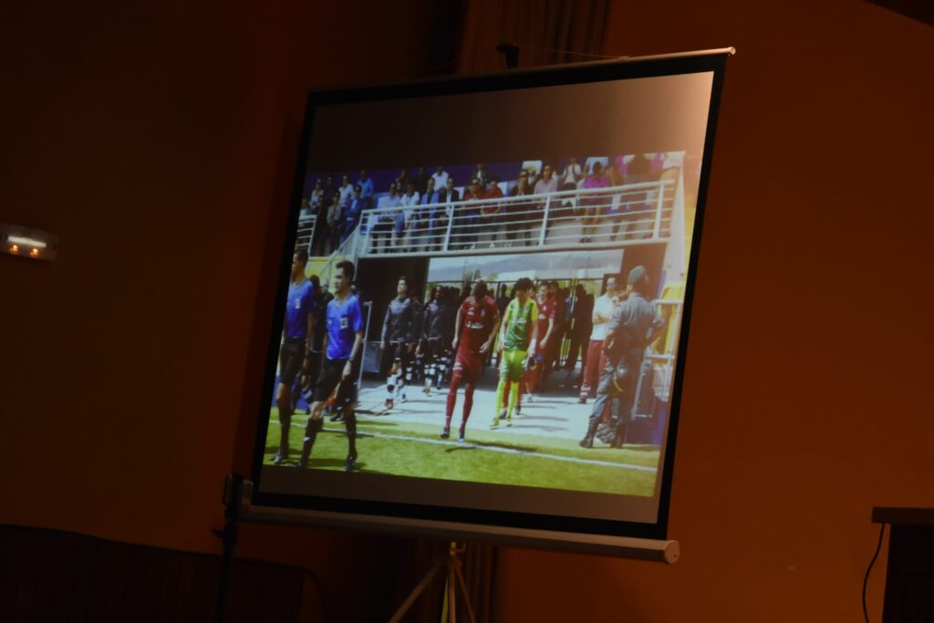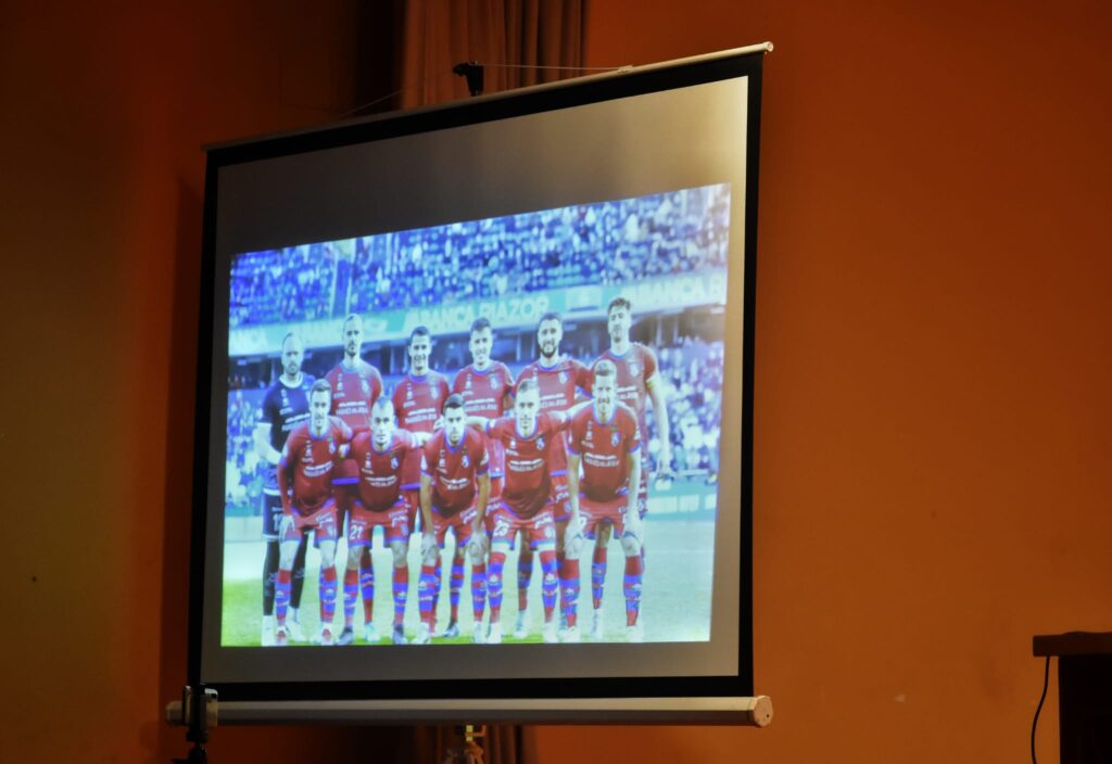 Con una sala llena por autoridades locales, representantes de la Federación Riojana de Fútbol, Real Sociedad, UD Logroñés y CDPradejón, expresidentes rojillos, patrocinadores y colaboradores del CD Calahorra, jugador@s de los cinco equipos del CD Calahorra, soci@s del club, y aficionados en general, cada uno fue narrando en su intervención diversos temas relacionados con el club de La Planilla.