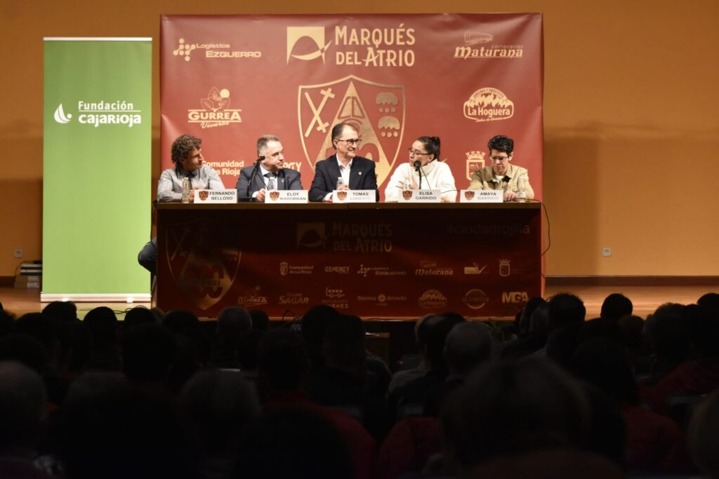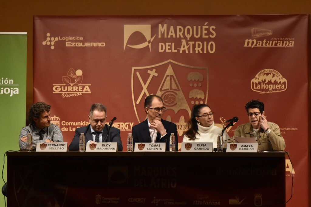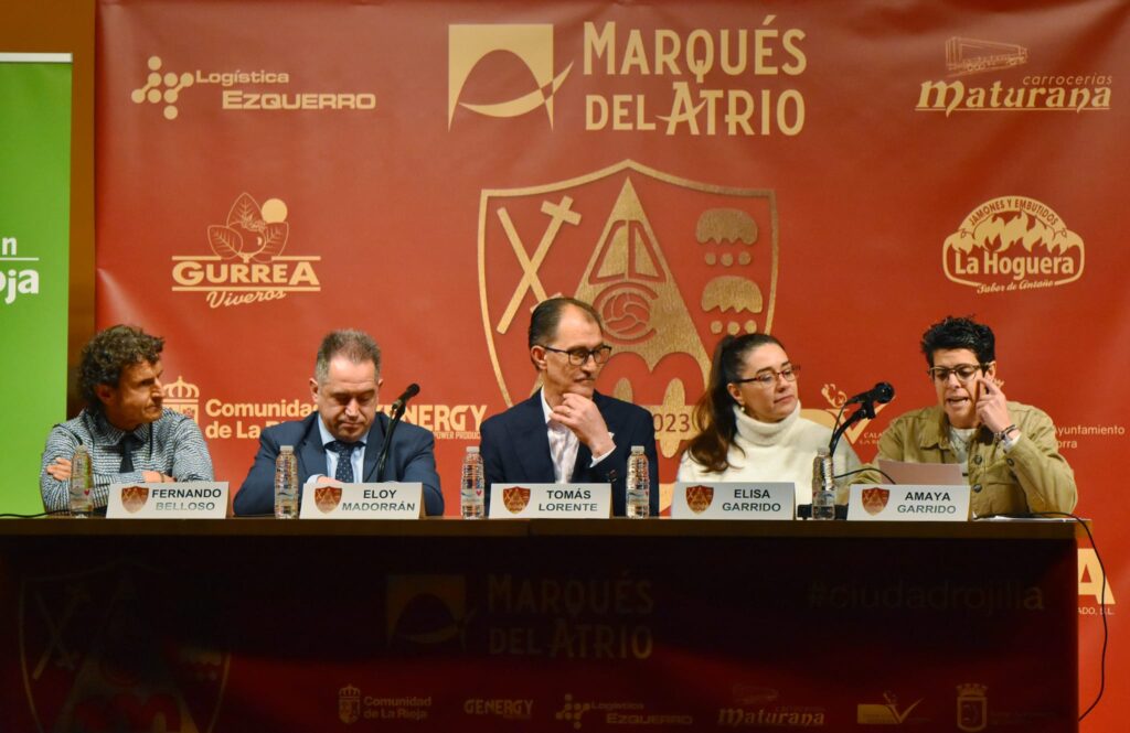 Ayer, 23 de febrero, se celebró en la sala cultural de Fundación Caja Rioja de Calahorra la apertura del Centenario del Club Calahorra. El acto fue presidido por el presidente del CD Calahorra, Tomás Lorente, al que acompañaron en la mesa presidencial, el director general de Deportes del Gobierno de La Rioja, Eloy Madorrán, la alcaldesa de Calahorra Elisa Garrido, el exjugador rojillo, Fernando Belloso, y Amaya Garrido representante del Comité del Centenario.