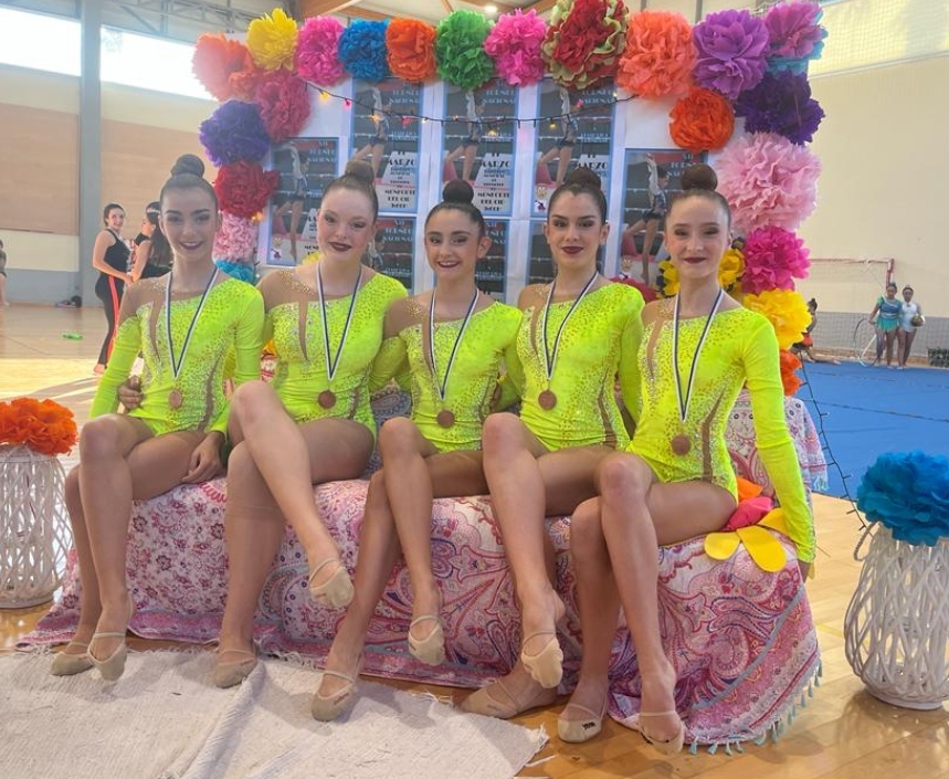 Y por otra parte nuestro conjunto cadete formado por Idaira, Carla, Andrea, Enma y Naiara, pisaron fuerte el tapiz y volvieron a subirse al podium esta vez como terceras clasificadas de su categoría.